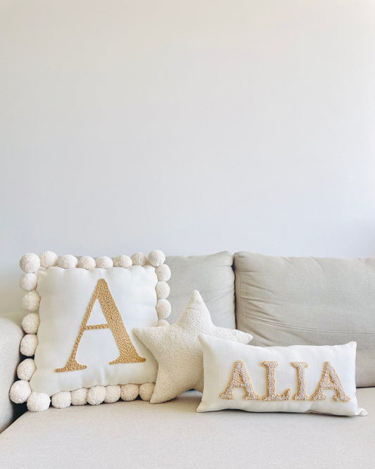Cojín 2 Nombres Pompones